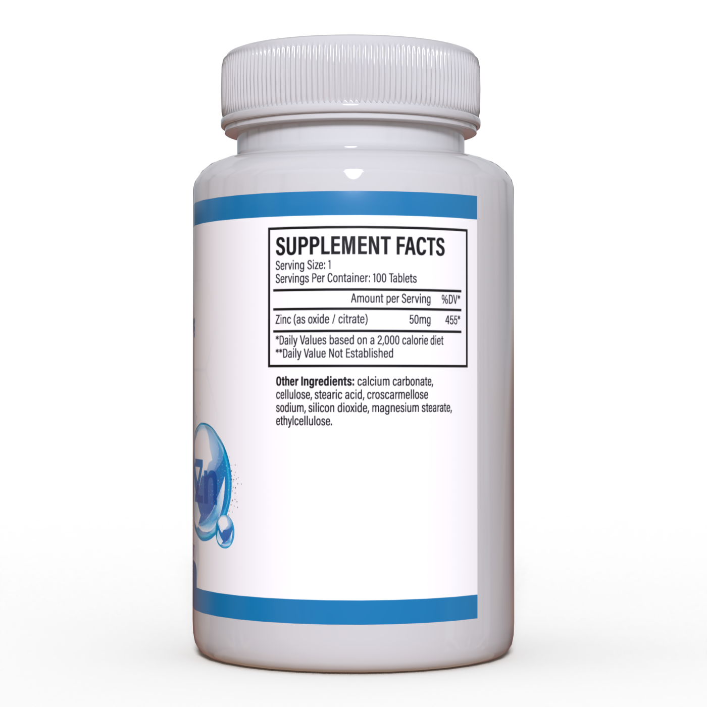Zinc 50 MG - (óxido / citrato) de alta potencia - Sin OMG, 100 tabletas veganas - Suplemento - Zella Health
