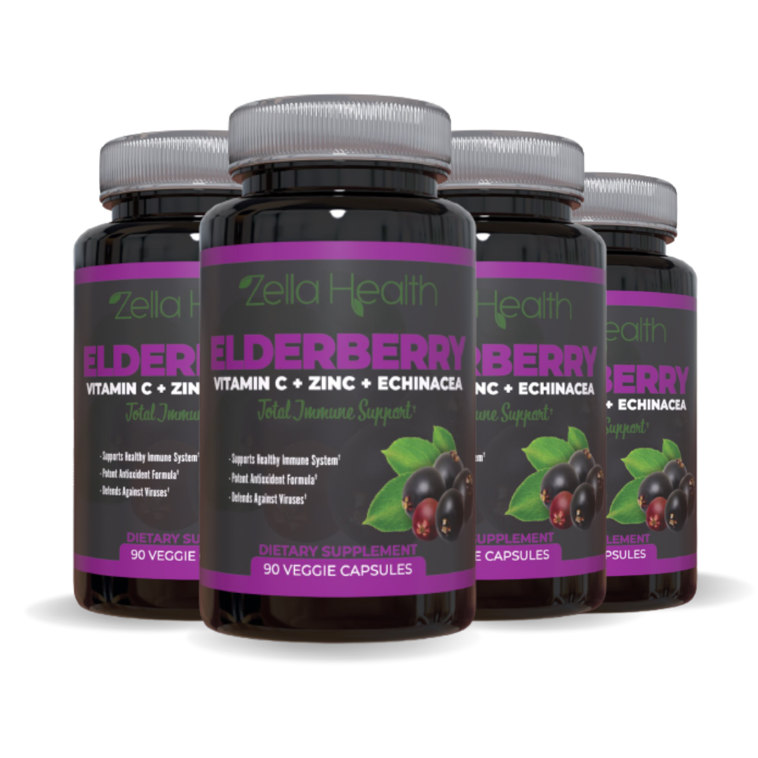 4 Bottles of Elderberry - with Zinc, Vitamin C, and Echinacea - Supplement - Daily Immune Support - 90 Veggie Capsules - Zella Health